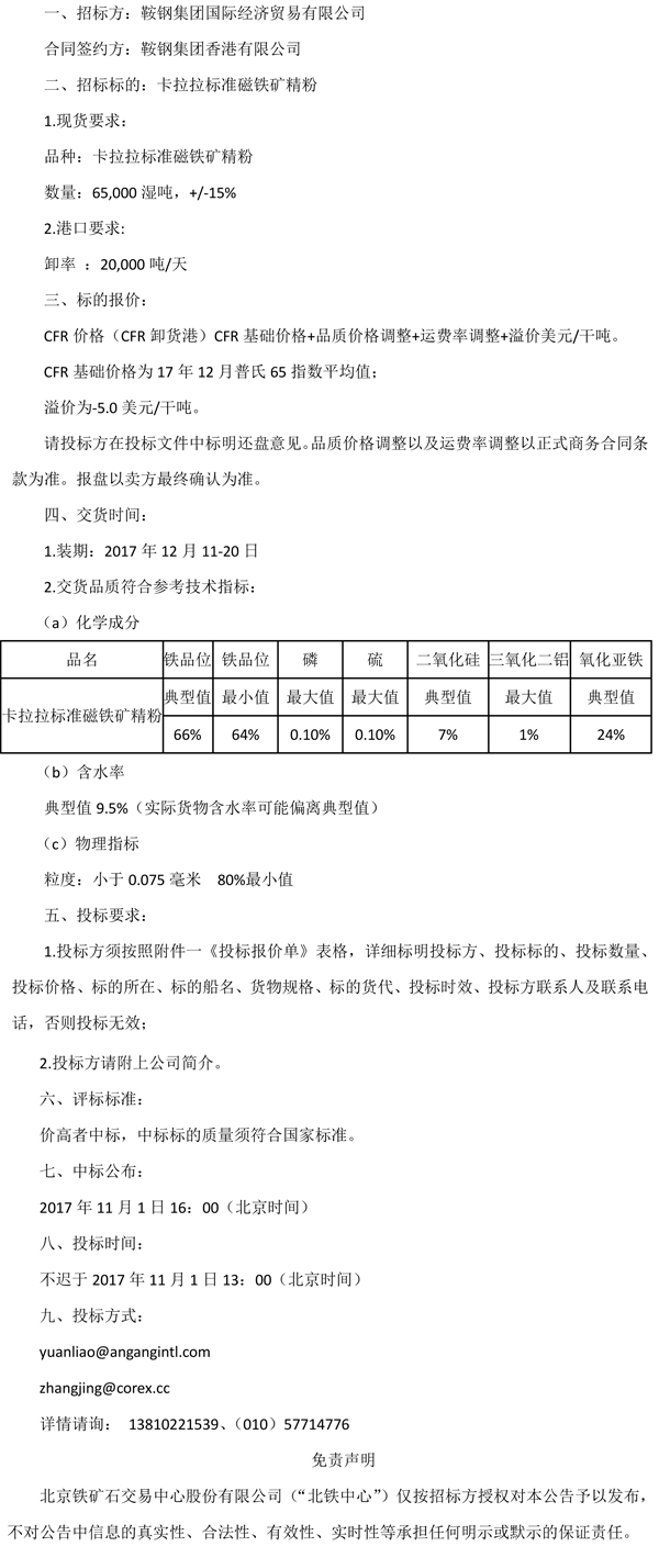 鞍钢集团国际经济贸易有限公司铁矿石销售招标公告