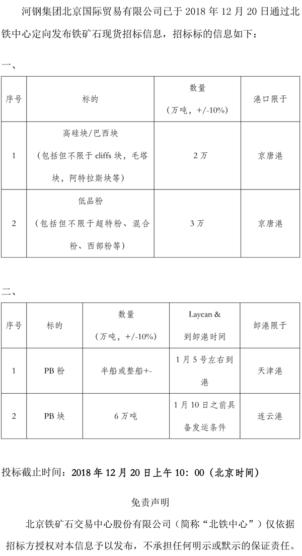 河钢集团北京国际贸易有限公司铁矿石现货招标信息