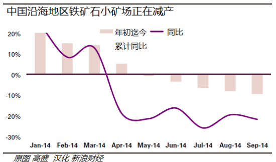 高盛对铁矿石2015年均价的预测值为每吨80美元。不过高盛分析师指出,这一预测基于两个假设,一是随着内外价差收窄,中国铁矿石产商将继续减产;二是在中国以外地区,边际产出继续对价格保持敏感、矿场关停会以及时的方式发生。